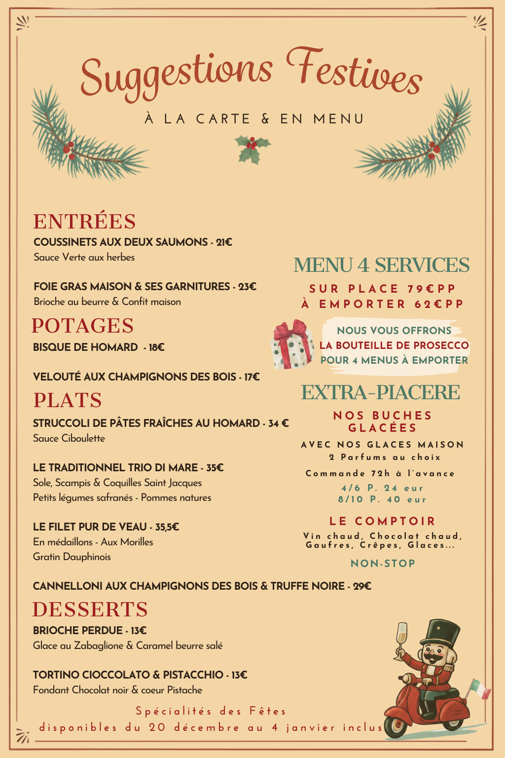 Dit charmante restaurant is de plaats van samenkomst bij uitstek in het hart van LAC Genval. Het huis is beroemd om zijn verse pasta, pizza, osso buco, antipasti, grill en vis … Een scala aan goed en smakelijk eten, om zowel bij ons als thuis van te genieten!